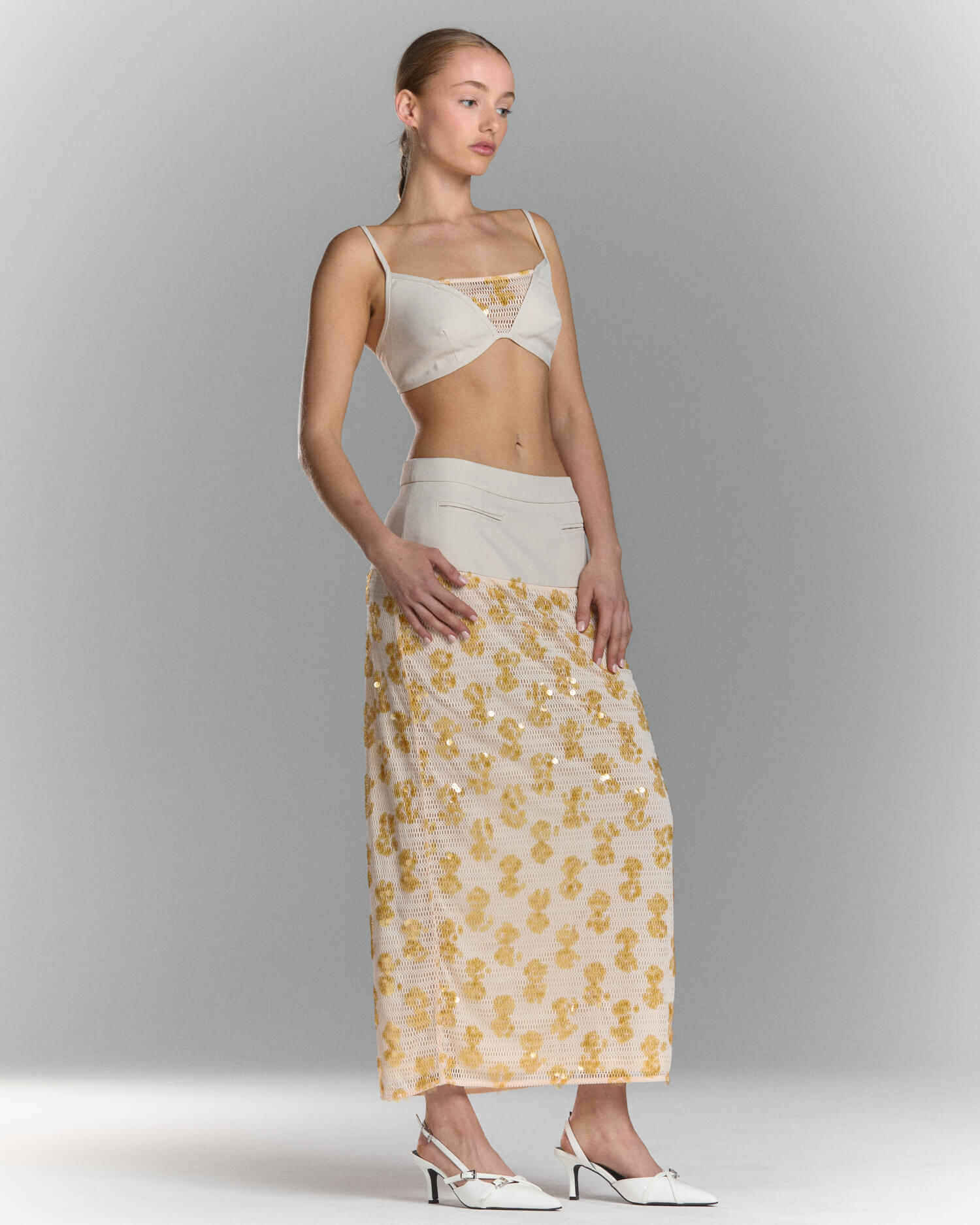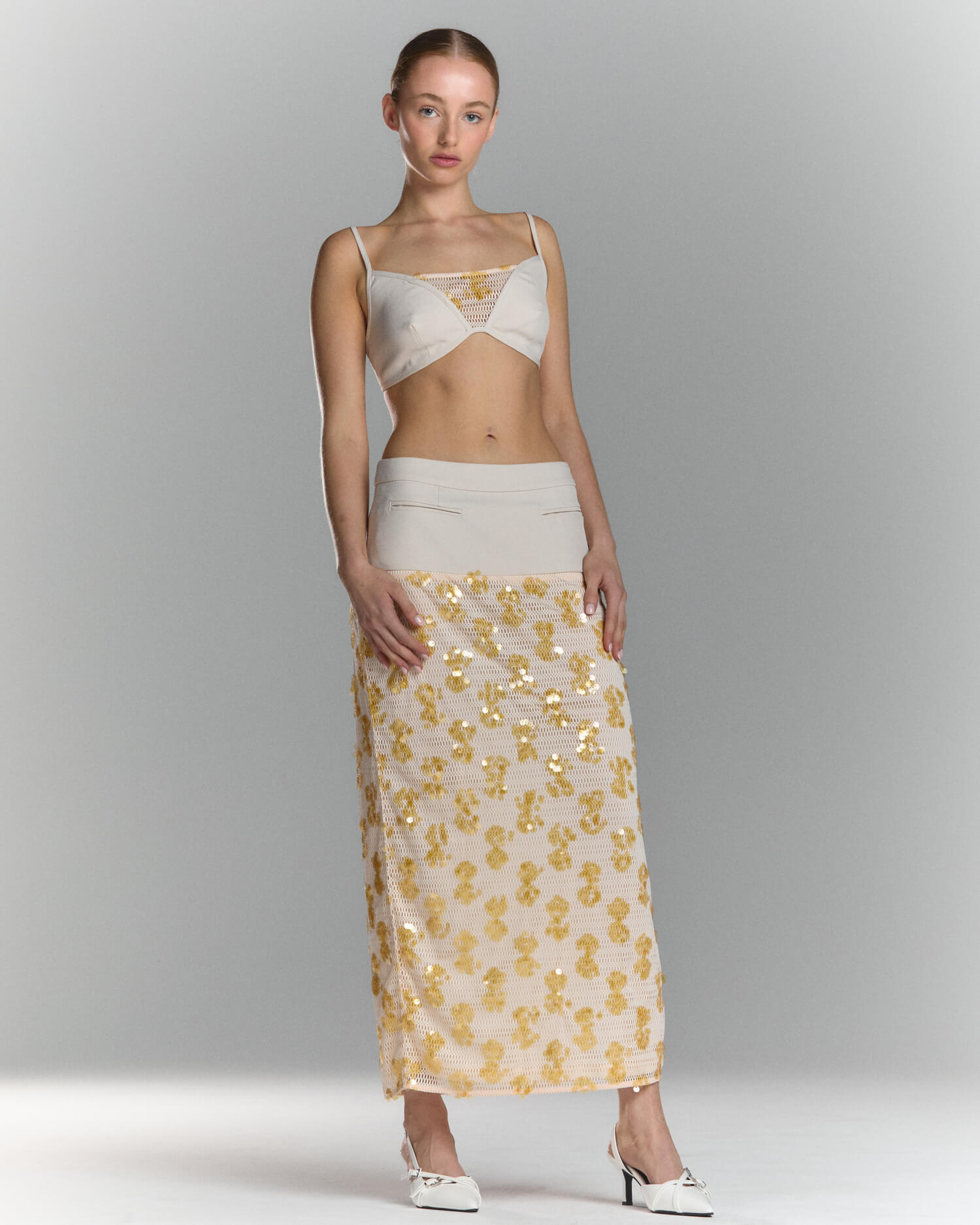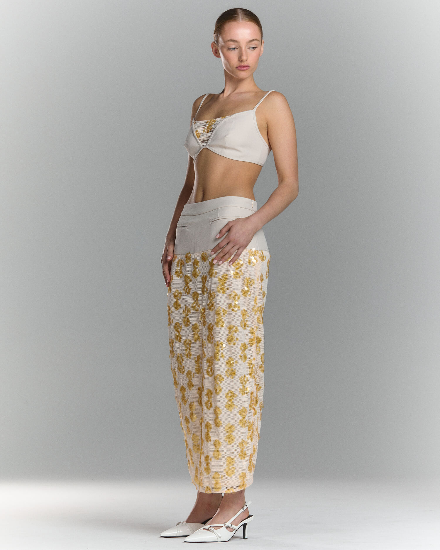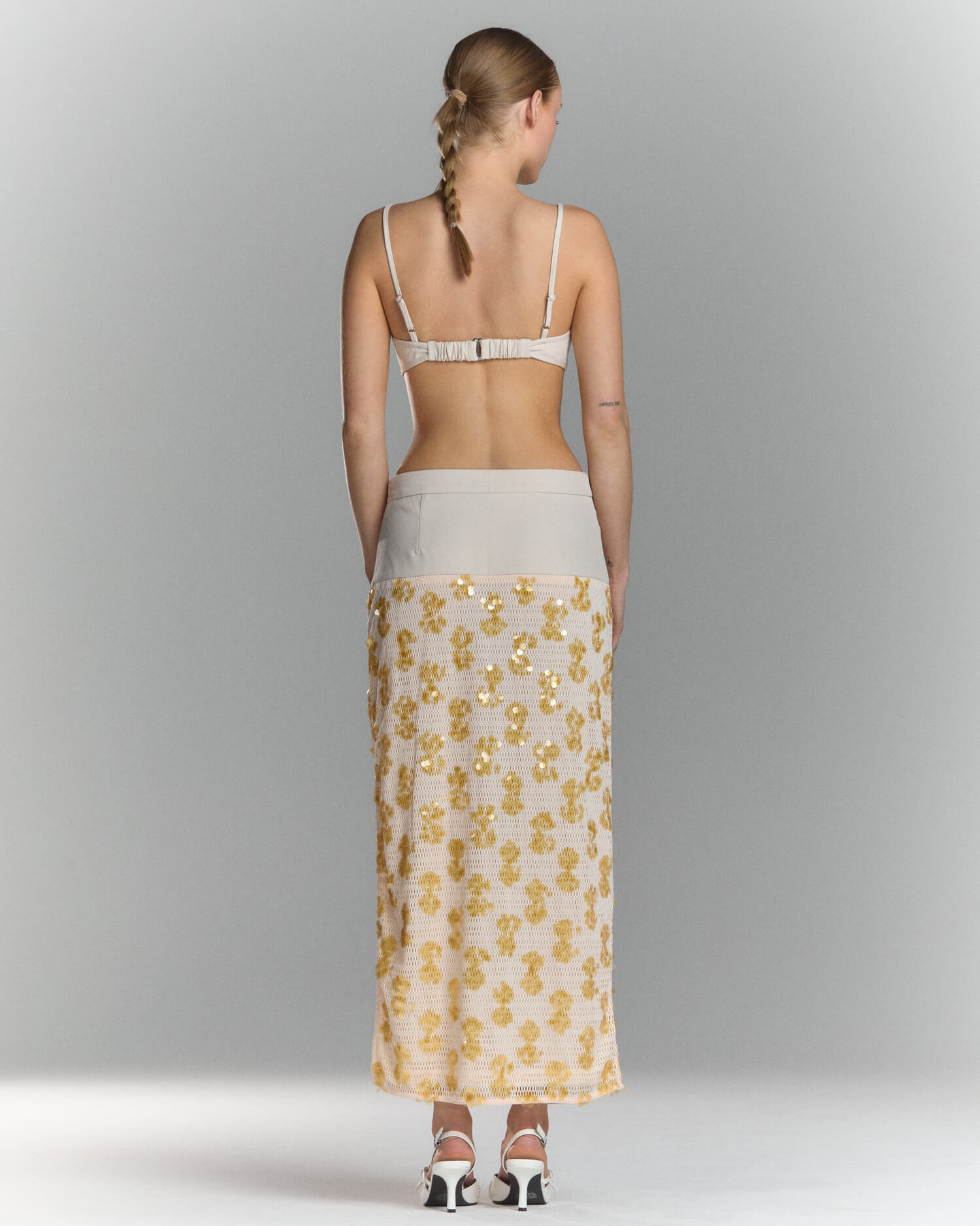 SEQUIN CONTRAST: 95% POLYESTER, 5% SPANDEX