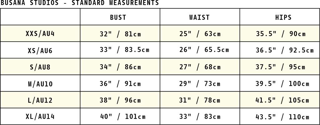 Our Size Guide is here to help you find your perfect fit at Busana Studios. We design our pieces with precision and attention to detail, ensuring each garment feels tailored to your unique silhouette. Use this guide to measure accurately and discover the ideal size for a comfortable, flattering fit. If you’re between sizes or need assistance, our team is always available to help you make the best choice.